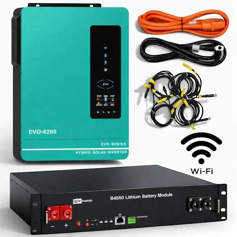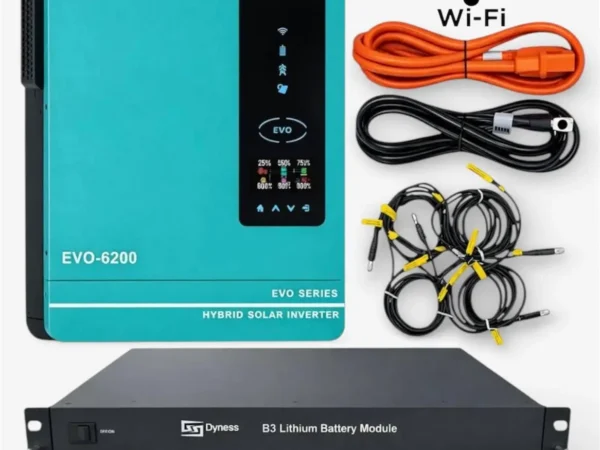 Готове рішення для безперебійного живлення під час відключень електроенергії. Комплект поєднує гібридний інвертор Anern AN-SCI-EVO-6200 і літій-залізо-фосфатний акумулятор Dyness B4850, забезпечуючи стабільну та безпечну роботу у вашому домі, офісі чи сонячній електростанції.