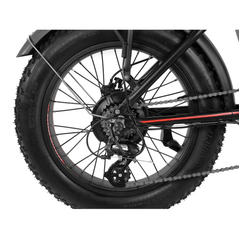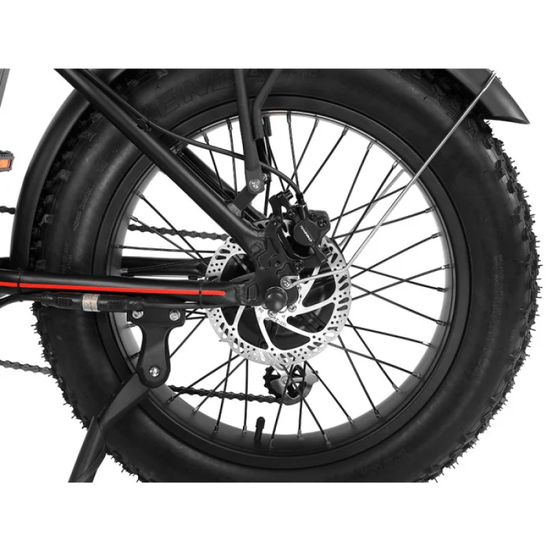 Літій-іонний акумулятор 48 V 21 Ah забезпечує великий запас енергії та дозволяє долати значні дистанції на одному заряді. Завдяки широким колесам 20″ Fat Tire велосипед має високу стабільність та відмінну прохідність на різних типах покриття.