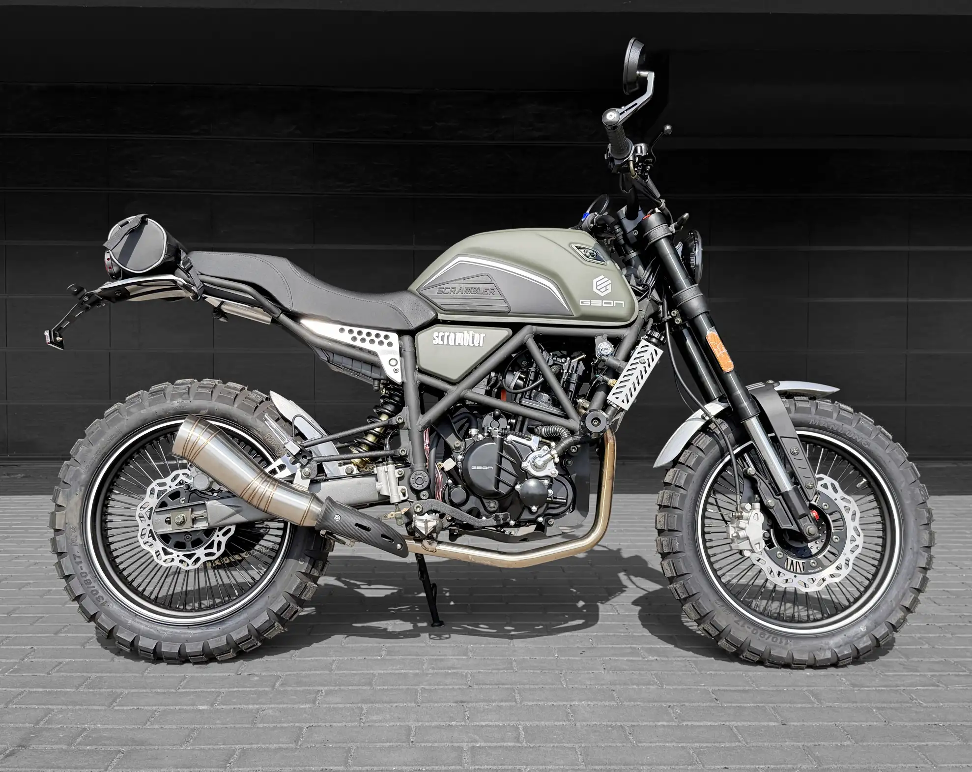 Geon Scrambler 300 — це мотоцикл, який поєднує стиль ретро та потужність сучасної техніки. Його серце — надійний одноциліндровий 4-тактний двигун об’ємом 299 см³ з чотирма клапанами та балансувальним валом — дарує 26 кінських сил драйву на високих обертах. Завдяки рідинному охолодженню та вдосконаленій системі мастила байк демонструє стабільну роботу навіть за інтенсивних навантажень.